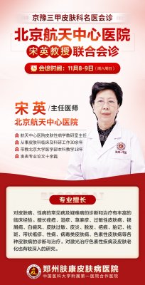 11月8日-9日,郑州肤康皮肤病医院为帮助河南疑难皮肤病患者早日实现健康无恙 解决“看病难、看病贵、看专家更贵”的问题特邀北京航天中心医院宋英主任莅临肤康进行联合会诊。